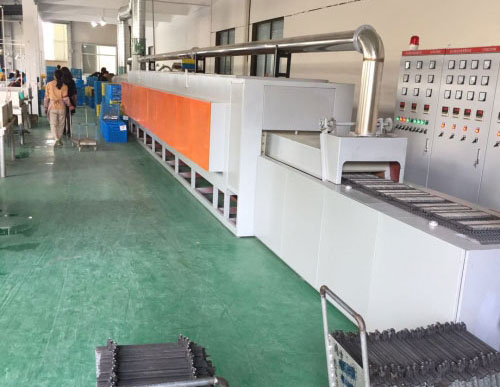 鋁釬焊爐主要用于鋁質零件在保護氣氛下進行的釬焊生產。主要有釬劑噴淋機,電熱干燥爐,釬焊加熱爐,水冷風冷裝置,氣氛控制系統和自動控制系統等組成。適合平行流冷凝器,層疊式蒸發器以及汽車水箱等鋁制散熱器的批量生產。